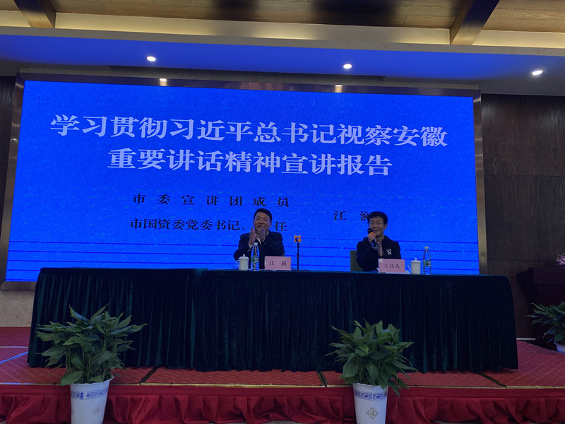 活動(dòng)第二部分,公司邀請(qǐng)了市委宣講團(tuán)成員、市國(guó)資委黨委書記、主任江瀾同志給公司全體員工作了《學(xué)習(xí)貫徹習(xí)近平總書記視察安徽重要講話精神》的宣講。江主任對(duì)習(xí)總書記視察安徽重要講話精神作了深刻的闡述,并結(jié)合實(shí)際對(duì)我公司為蕪湖市經(jīng)濟(jì)、產(chǎn)業(yè)發(fā)展所作貢獻(xiàn)、取得成績(jī)給予高度認(rèn)可,進(jìn)一步激發(fā)了公司全體員工干事創(chuàng)業(yè)的激情。